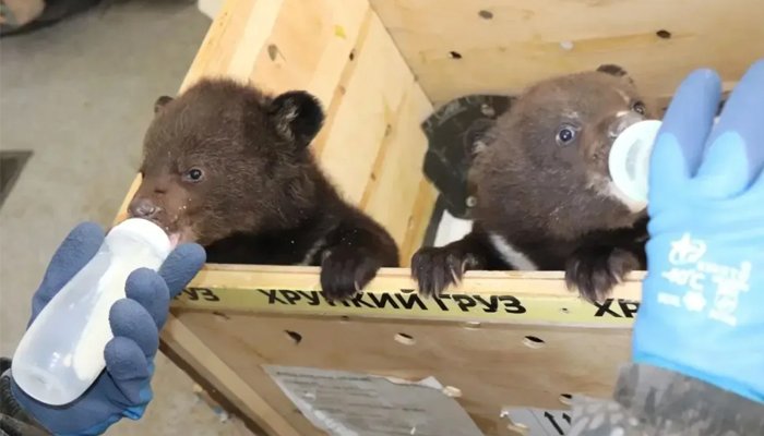 В Приморском крае были обнаружены два осиротевших медвежонка: их мать погибла от рук браконьеров. Малыши, ещё не готовые к самостоятельной жизни, были переданы в реабилитационный центр.